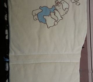 douillet bleu ciel/beige très propre motifs: winnie et souris longueur totale:180 cm(3x60cm) h:40cm