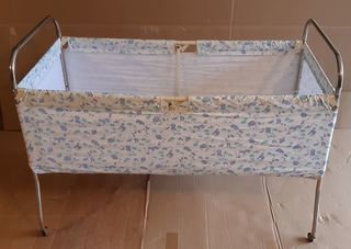 Lit bébé pliant ancien en métal et tissu. Avec matelas Année 1960 Prix : 30€ A prendre sur place à Bourges