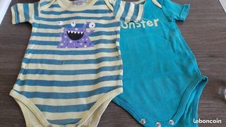 bonjour je vends le lot de 2 bodys manches courtes 12 mois , en bon état.