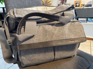 Sac à langer d'occasion avec de nombreux rangement, couleur gris