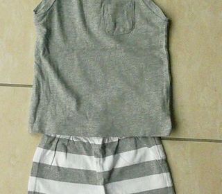Ensemble taille 12 mois composé de : - Un short à rayures gris et blanc, - Un débardeur gris assorti. Très bon état. N'hésitez pas à regarder mes autres annonces pour réduire l