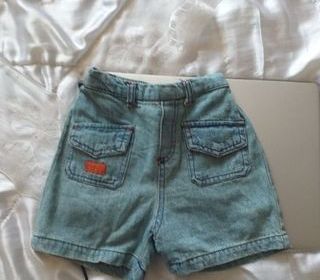 SHORT JEAN FILLE COULEUR BLEU CLAIR TAILLE 12 MOIS 2 POCHES DEVANT AVEC RABAT TAILLE ELASTIQUE A L'ARRIERE 2 FAUSSES POCHES ARRIERE 100% COTON MARQUE CARAMOUILLE GILET FILLE CO