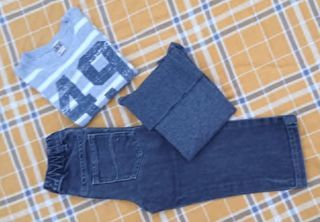 Superbe ensemble en coloris "Ton Gris" comprenant : 1/ Pantalon Jean... taille élastiquée * Matière : 70% Coton et 30% Polyester * Marque : Kimbaloo * Lavable machin
