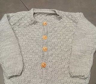Gilet laine grise, fait main, 3/6 mois (voir mesures) : longueur 30 cm, épaules 28 cm, sous-aisselles 30 cm, manches 26 cm. Transaction/envoi via le site, retrait possible à Boutig