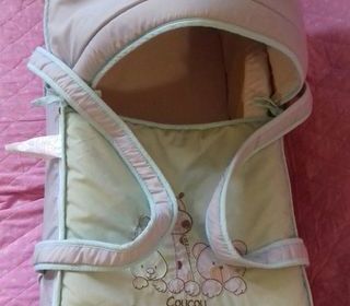Couffin souple nomade en tissus. Pour un nouveau né. Très bon état propre lavable en machine. Idéal pour faire dormir un petit bébé lors d'un déplacement pas besoin de lit parapl