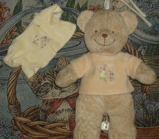 Doudou musical TEX ours. Musique: Ah! Vous dirai-je, Maman. Couleur: beige. Longueur 28cm hors cordon pour l'accrocher. Avec un change. Très bon état. Possibilité d'envoi à l