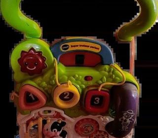 Quelques traces d'usure (vache), la porte jaune un peu difficile à ouvrir. C'est un jouet idéal pour l'apprentissage de la marche. Évolutif et complet, il propose de nombreuses