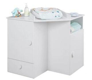 Table à langer avec plusieurs rangement quelques taches de crème et de médicaments au dessus (à repeindre).
