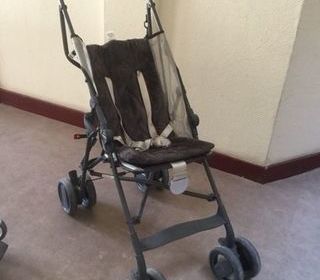 Poussette canne, très bon état gris foncé . Ultra légère, pratique pour les transports , dossier inclinable et fournie avec tous les accessoires. Protection pour la pluie, petit
