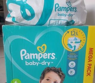 Bonjour, Lots de couches taille 6 72 couches Pampers baby dry + 16 couches d'un paquet déjà ouverts (j'ai fait une erreur en écrivant 15 sur le sac) À venir chercher sur Saint