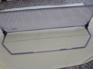 grande barrière de lit à placer sur un lit classique pour empêcher une enfant de tomber du lit , quand il passe du lit bébé au lit d'enfant plus grand ; dimensions 150