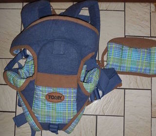 porte bébé ventral de marque chicco : très confortable ,avec harnais et ceinture de maintiens ajustables à la taille de l'enfant et à celle du porteur ,