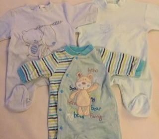 4 bodies manches longues, 1 mois, 5€ Possibilité 19 vêtements : 4 pyjamas dont deux Absorba, 1 pull Boutchou, 8 bodies, 2 vestes, 1 sweat, 1 salopette, 1 bonnet et 1 paire de chau