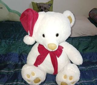 vends ours polaire blanc avec bonnet de Noël et nÅ"ud papillon rouge . pas de paiement PayPal.