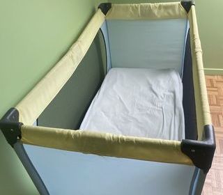Je vends un lit parapluie en état correct. Il présente quelques petits accros, mais ceux-ci ne gênent pas son utilisation ni la sécurité de l'enfant. Ce lit est idéal pour les dép