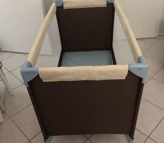 Lit parapluie marron et bleu marque Babideal avec sac de transport avec matelas