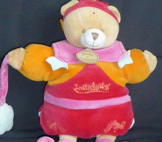 Doudou marionnette ours indidous doudou et compagnie rose orange rouge bleu (1) remise en mains propres à Rueil Malmaison ou envoi colissimo ou mondial relay
