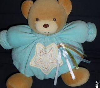 Type : Autres accessoires pour bébé Doudou ours boule patapouf bleu plume Kaloo 10 ème anniversaire Etoile sur le devant Ruban que du bonheur remise en mains propre