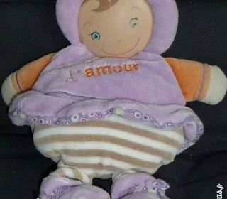 Type : Autres accessoires pour bébé Doudou bébé d'amour Doudou et compagnie Collection les bouilles de doudou un oeil un peu effacé corps mauve et orange remise