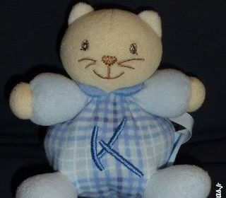 Type : Autres accessoires pour bébé Doudou chat accroche tétine Kaloo blue tissu carreau bleu et blanc K brodé Excellent état remise en mains propres à Rueil M