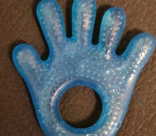 Anneau de dentition en bon état, idéal pour soulager les gencives de bébé. ? Forme de main facile à attraper ? Peut être mis au frigo pour un effet rafraîchissant ? Matière so