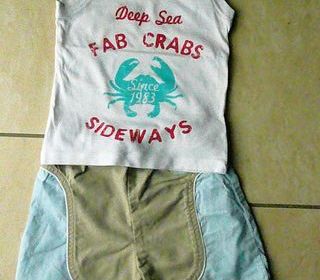 Ensemble composé de : - Un short beige et bleu ciel, ceinture élastique, - Un tee-shirt sans manches assorti. Très bon état. N'hésitez pas à regarder mes autres annonces pour r