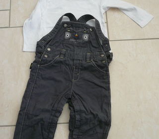 Ensemble composé de : - Un pantalon doublé, en velours gris, - Un tee-shirt assorti, - Une paire de chaussettes assorties. Très bon état. N'hésitez pas à regarder mes autres a