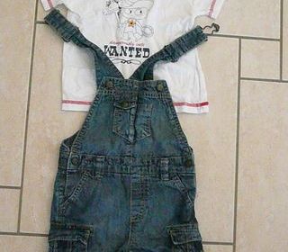 Ensemble composé de : - Une salopette en jean ? Marque Obaibi, - Un tee-shirt blanc à motif. Très bon état. N'hésitez pas à regarder mes autres annonces pour réduire les frais