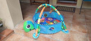 Parc d'éveil bébé. Mixte. avec Arches jeux de balles. Jouets amovibles. Diamètre 75cm hauteur filet 27cm. Parfait état; Vendu avec jeux ludique à piles