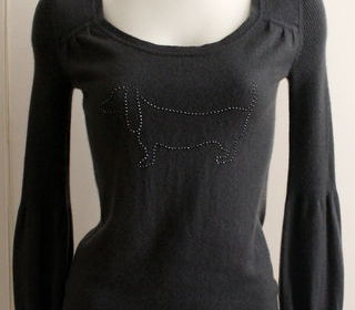 Pull cachemire chien teckel ERIC BOMPARD T.S soit 36 Fr cachemire et soie H 62 cm Aiss 42 cm motif strass chien Teckel TBE Envoi possible RMP métro Corentin Celton