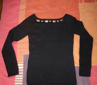 PULL noir "Christina" uni . encolure 7 boutons cousus facettés . manches longues . viscose/coton/spandex .