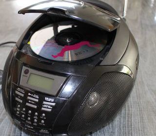 Radio CD portable, fonctionne sur piles ou secteur. Radio FM, lecteur CD, Prise USB et Carte SD en MP3