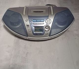 Poste radio avec CD et cassettes marque Panasonic. Parfait état de fonctionnement. Alimentation secteur et possibilité par piles. Télécommande pour les 3 fonctions.