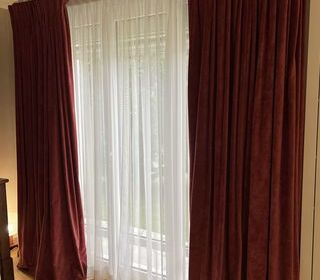Quatre rideaux doublés velours de chez Lelièvre couleur Bordeau - Chaque rideau mesure : - largeur : 270 cm - Hauteur : 260 cm ( ourlet non fait )