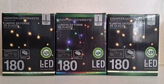 Vends 3 guirlandes électriques forme "rideaux" 180 lampes, pour intérieur ou extérieur - 2 blanches - 1 multicolore Les trois sont clignotantes, avec 8 fonctions différentes V
