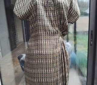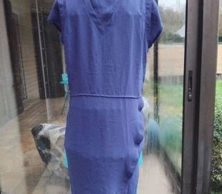 Robe effet plissé verte et jaune à manches courtes Ouverture en V sur la poitrine Longueur 85 cm Poitrine 44 cm D'occasion comme neuve Remise en mains propres sur Lourdes