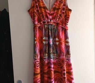 Robe/ Tunique "Panthère" Rouge Beige Noir sans manches- Neuf- A Part Ca * Robe/ tunique en tissu "panthère" rouge beige et noir s'évasant vers le bas, doublée et sans manches, a