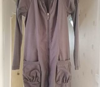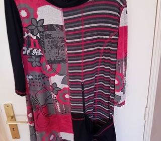 tres belle robe Neuve en 100 % lin fibre naturelle produits style innovation assymetrique marque Planete evasée , taille non indiquée a la mesure epaules 46 cm longueur 73 cm deva
