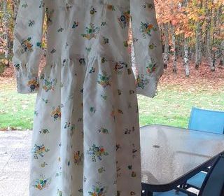 Robe longue en coton chevronné entièrement doublée - coloris blanc avec imprimé floral- col rond - fermeture éclair dos - boutons manches recouverts tissu