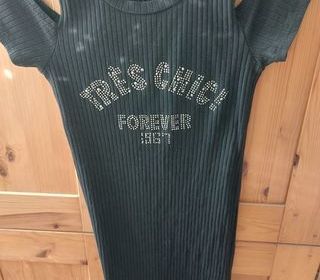 Originale manches ouvertes sur épaules TT STUDUO M/L 95% coton Noir Inscriptions paillettes Longueur 75 Largeur 32