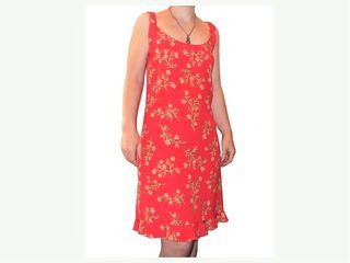 Robe en 100% Viscose Rouge Orangé à Bretelles- Taille 36- Bluelita * Robe rouge orangé avec des fleurs jaunes et vertes, son laçage dans le dos permettant de bien cintrer la robe,