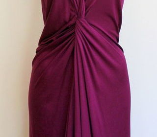 Robe drapée violine YVES SAINT LAURENT T.38 Fr viscose H 100 cm Aiss 42 cm TBE Envoi possible RMP métro Corentin Celton