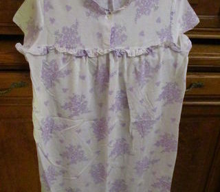 robe de nuit fleurie blanche et fleurs violettes courtes manches volants contact : abc2020