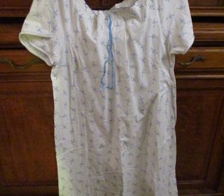 robe de nuit blanche avec petites fleurs bleues - tissus. élastiques sur le haut n'est plus bon, mais si on veut remplacer, il y a la place. très bon état pour récupération du ti