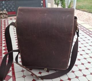 GRANDE SACOCHE EN CUIR ROBUSTE MARRON GRANDE CAPACITE JAMAIS SERVIE VINTAGE