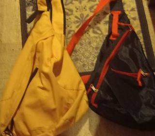 lot de 2 sacs en bandoulière entièrement neuf en nylon avec poche un jaune et un noir et rouge jamais utilisé