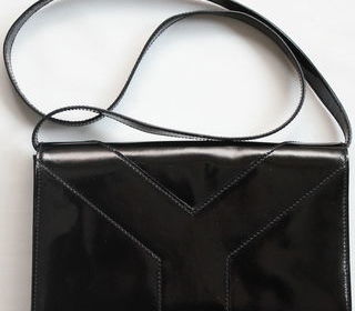 Sac verni noir YVES SAINT LAURENT rive gauche cuir verni fermeture pression sous rabat Long 26 cm Haut 15 cm prof 6 cm doublure siglée Y 1 poche zippée int. autres photos d