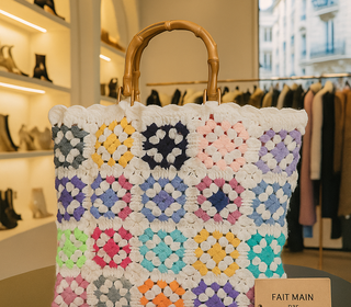 je vends ce joli sac granny fait main au crochet entièrement doublé idéale pour ranger tout plage,bureau,travail, shopping.anses en bois doublure en tissus