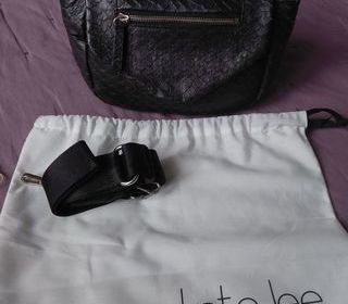Sac à main noir de la marque KATE LEE effet "écailles", tout cuir, 1 poche avant à fermeture zippée avec rabat, 1 poche à fermeture zippée sous le rabat, 1 poche principale à ferme