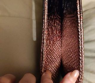 Petit sac cuir vegan façon reptile avec anse rigide façon résine de synthèse légèrement fumée. Superbe et très élégant pour cérémonies, soirée... Très chic. Poches intérieures ferm